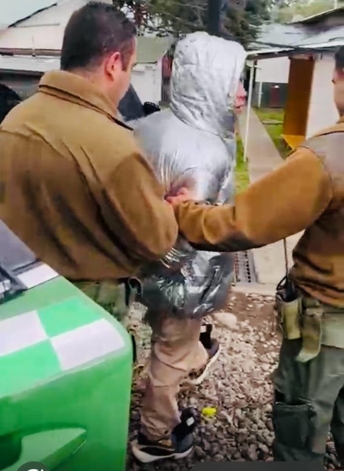 “Carabineros inicia un seguimiento a esta persona, quien en el sector Villa Los Glaciares, huye hacia la ribera del río (Coyhaique) y el personal luego de mucho tiempo siguiéndolo a pie, bajan, cruzan el río y logran la detención de este individuo”, señaló el Oficial.