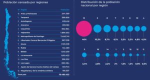 Las regiones que concentran el mayor porcentaje de la población son la Región Metropolitana, con 7.400.741 personas, equivalente al 40% de los residentes censados; la Región de Valparaíso, con 1.896.053 personas, que corresponden al 10,3%, y la Región del Biobío con 1.613.059 personas, que representan el 8,7% de personas a nivel nacional. Por otra parte, cinco regiones tienen más de 1 millón de personas: Metropolitana, Valparaíso, Biobío, Maule y La Araucanía. En 2024, por primera vez, se contabilizaron más de 1 millón de personas en la Región de La Araucanía. En tanto, la Región de Aysén alcanza 100.745 personas censadas lo que representa un 0,5% del total de la población de nuestro país, consolidándose como la región con menos habitantes.