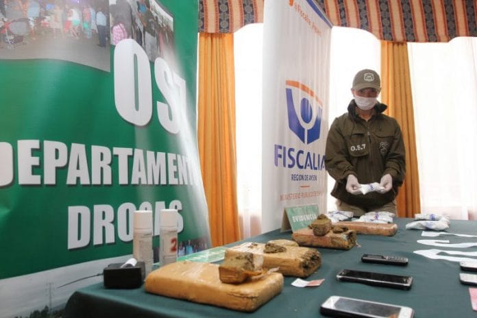 Coyhaique.- Cinco personas detenidas por el delito tráfico y el retiro de circulación de 13 mil 500 dosis entre marihuana y clorhidrato de cocaína avaluada en cerca de cien millones de pesos, fue el resultado de una diligencia desarrollada de manera conjunta por la Sección O.S.7 de Carabineros y la Fiscalía Local de Coyhaique, la cual fue apoyada por el Grupo de Operaciones Policiales Especiales (GOPE) en pleno centro de la capital regional.
