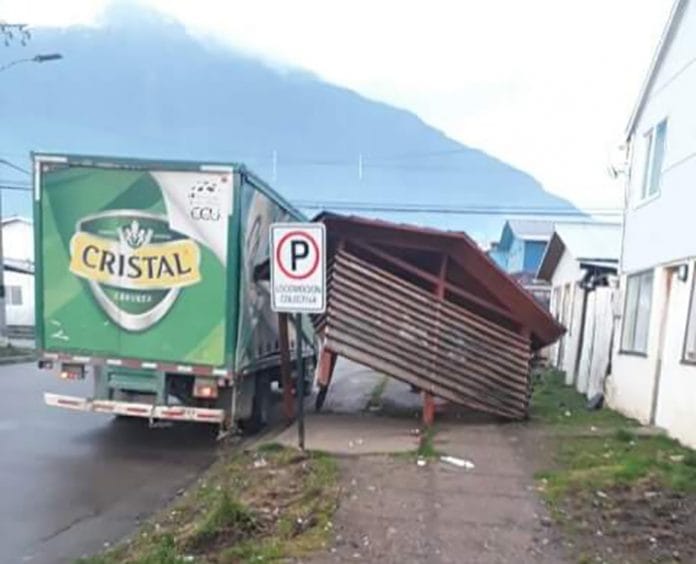 Durante la jornada del día martes pasado, en la esquina de las calles Lago Portales con los Cipreses, un camión de la empresa CCU chocó y derribó un paradero ubicado en el sector, lo importante es que en el lugar no había personas que hayan resultado afectadas por este accidente.