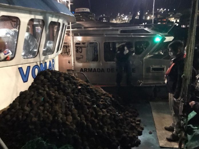 “De este modo, la Unidad marítima logró fiscalizar la Lancha a Motor “Vomar”, matrícula de Ancud, escoltándola hasta el muelle “Emporcha. Finalmente el resultado de la fiscalización arrojó la incautación de 2,2 Toneladas de recurso Erizo, por infracción al art. 75, 107 y 116 de la L.G.P.A., disponiéndose además, un sumario sanitario por no contar con sus salvoconductos. Además de efectuar la citación a fiscalía marítima por navegar sin autorización de zarpe”.