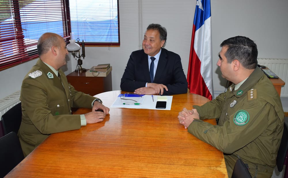 Puerto Aysen.- Esta autoridad provincial recibió en su despacho al nuevo Mayor de Carabineros donde se aprovechó la instancia para desearle una buena estadía en Aysén y para ofrecer un trabajo colaborativo “Nosotros recibimos como se hace siempre en nuestra provincia con las puertas abiertas, decirle al Mayor Manzur que tiene a la Gobernación como un aliado estratégico y para coordinar todo lo que tiene que ver con la seguridad pública como lo ha mandatado el Presidente de la República Sebastián, vamos a estar comunicados permanentemente para dar a nuestra gente la tranquilidad y seguridad que Carabineros de Chile y remarcar que la Gobernación está trabajando para la tranquilidad de toda nuestra Provincia”.