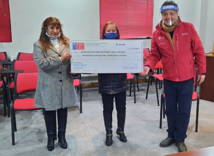 Por su parte Vicky Flores Presidenta de la Agrupación Nalcayec no ocultó su emoción y agradecimiento al Gobierno por haber obtenido esta importante ayuda “Agradecer primero al señor Gobernador, a las funcionarias Karen Aravena y Viviana Oñate quienes nos guiaron para poder postular a este fondo, agradecer al gobierno del Presidente Piñera por esta oportunidad, este cheque nos servirá de mucho para nuestra sede, porque compraremos algunos elementos para nuestra cocina y también equipos de amplificación para poder utilizarlos en nuestros ensayos o presentaciones”.