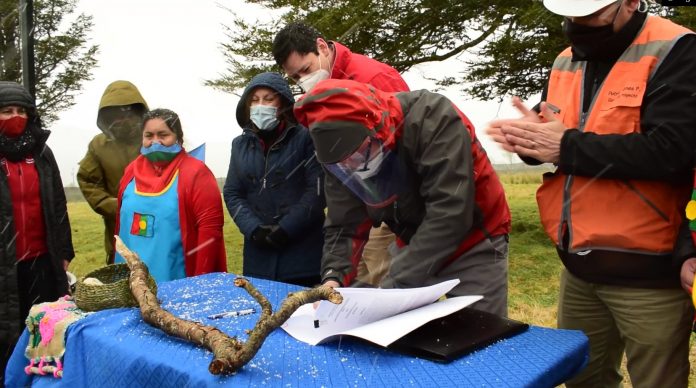 La ceremonia, que se realizó tomando todas las medidas sanitarias dispuestas por la autoridad de salud, se llevó a cabo en el terreno donde se edificarán las 204 viviendas y, además de la firma de contratos y la postura de la primera piedra, tuvo como eje central la bendición de la tierra con una rogativa mapuche y la plantación de un canelo, árbol sagrado para las comunidades indígenas.