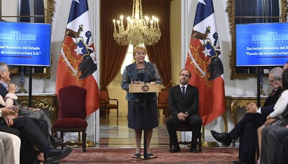En el Salón O’Higgins del Palacio de La Moneda, la Presidenta de la República, Michelle Bachelet, promulgó la ley que crea el Fondo de Infraestructura S.A, que “es más que una simple política pública. Yo diría que es, para muchos, la actualización más relevante de nuestra institucionalidad en obras públicas, desde que se creó el Sistema de Concesiones, hace más de dos décadas”.