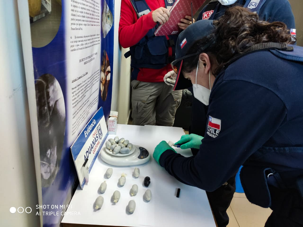 La extranjera portaba en su bolsillo 10 ovoides con 127,4 gramos de cocaína. Posteriormente, durante el control de Aduanas y luego de informar que había tragado más contenedores, evacuó otros 11 ovoides con 139,7 gramos adicionales de la misma droga.