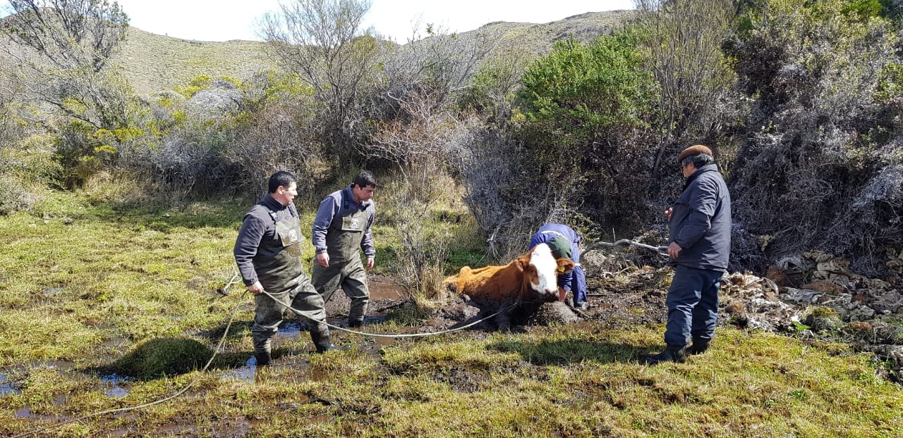 Tras una hora de un trabajo con cuerdas, Carabineros de la Tenencia de Puerto Ingeniero Ibáñez (F) junto a lugareños, lograron rescatar un animal vacuno, el cual mientras se encontraba pastoreando, en forma repentina ingresó en un sector de fango donde quedó atrapado sin poder liberarse.