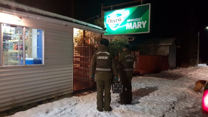 Villa Ortega.- Peritos del Laboratorio de Criminalística de Carabineros (Labocar), en coordinación con la fiscalía local de Coyhaique, realizan diligencias orientadas a lograr el esclarecimiento de un delito de robo, el cual afectó a un minimarket de la localidad de Villa Ortega.