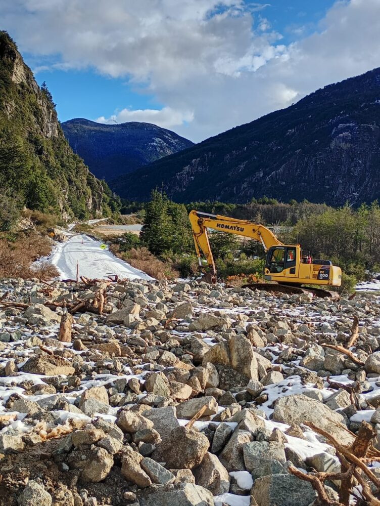 Desde el Ministerio de Obras Públicas indicaron que los equipos que llegaron hasta el km 785 de la Ruta 7 Sur, lugar donde existe rodado de 6 mil metros cúbicos con una altura superior a los 5 metros, lo están abordando por ambos frentes, norte y sur, para dar conectividad a la Ruta 7 Sur en ese sector habilitando el tránsito terrestre este martes.