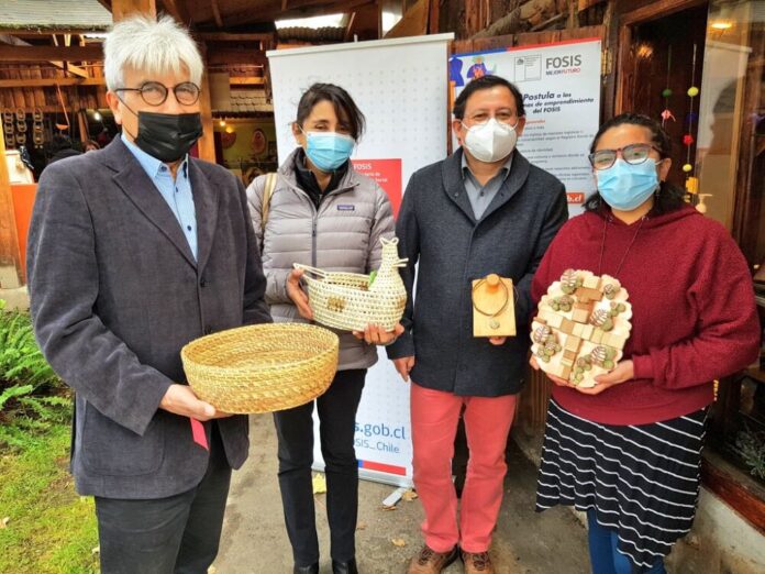 Hasta la Feria Artesanal de Coyhaique llegaron el Delegado Presidencial Regional de Aysén, Rodrigo Araya; la Directora Regional (S) del FOSIS, Maria Soledad Vera y el representante del Ministerio de Desarrollo Social y Familia, Rafael Pla, para conocer el trabajo y experiencia de emprendimiento de la orfebre local, Carol Epuyao, junto con realizar el lanzamiento de las postulaciones 2022 a los programas del Fondo de Solidaridad e Inversión Social para la región de Aysén.
